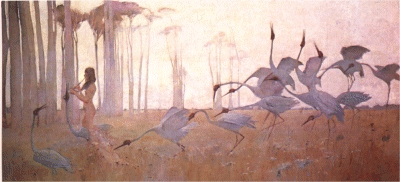Here, Australian artist Sydney Long's famous painting Spirit of the Plains introduces British spiritual resonance to the primordial Australian landscape.