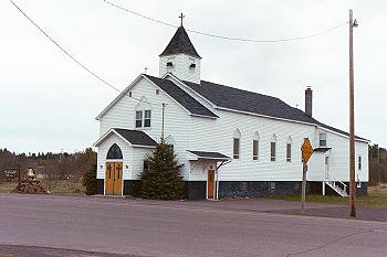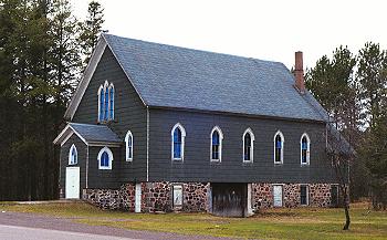 Morgan Grierson General Store. The church, seen in a May 2002 picture at right, has since been renamed Our Lady of Peace Catholic Church. When I went to Ahmeek to take the picture, I was a bit confused by this, but comparing old pictures of the structure with this photo, I'm confident it is the same building. It has had a few changes though: new windows, new siding, a new front entrance, and new awnings on the side entrances. (9)