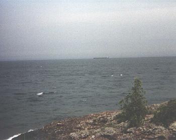 While visiting the Copper Harbor Lighthouse I noticed this ore boat out on the horizon. I just wish it got closer so I could have made out the name. |