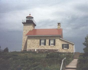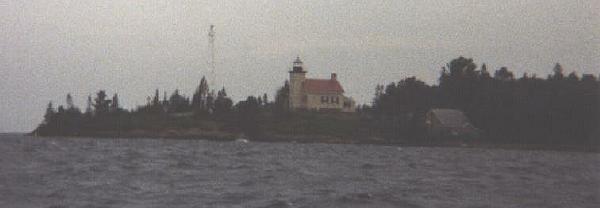 | The Copper Harbor Lighthouse, seen on a not so great day. This was taken on the boat on the way out to the light. On the way back the waves on the harbor were so bad that the captain said he wasnt going out again for a while. |