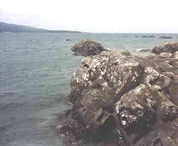 | While waiting for the return boat that would take us back from the lighthouse I snapped this picture of what I thought was an interesting rock formation. Rocks like these lie just below the surface at the entrance to the harbor, which made a lighthouse in this location essential for shipping back in the old mining days. |