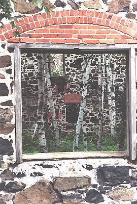 Kath really likes this shot. We're looking through one of the windows of one of the surface buildings at Delaware Mine. I dont remember which one it is, I think it might be the powerhouse or something. |