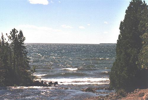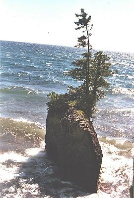 A rock outcropping we saw off the foot trail to the falls. It was probably connected to the mainland at some point, but the rock has been pulverized over the centuries by the lake. |