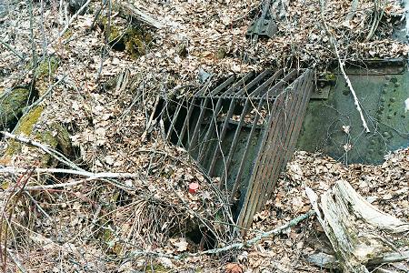 The grate in the center of the photo guards the upstream side of the Baltic Mill supply pipe. The valve for this pipe is shown in the main dam page. I also took a picture of the Atlantic upstream side, but it was so overgrown with saplings and other vegitation that I didnt think it would be very easy to see what I was trying to display so I'm not going to post it. |