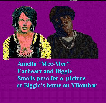 "I'd never seen anyone as powerful as Biggie" said Earheart. "He was so big and strong looking, a real Moorish warrior, you know? All I could think about was going back home, to my world, but after seeing him, I had every reason to stay. And when I heard the deep jungle rhythms of his rap music, I felt as if I'd died and gone to heaven." She then started hanging out with some of the Teletubbies and the Griggaz (i.e., grey alien "niggaz") and became a huge fan of Hip Hop and of Biggie Smalls in particular. "I started wearing some of the grigga fashion, got my hair braided and even learned how to dance. Let me tell you, this is a lot different than Swing, or the Waltz, but it was something I KNEW I HAD to get into." Amelia had even decided to change her name. "I tell everyone I know to address me as 'Mee-Mee' now!"