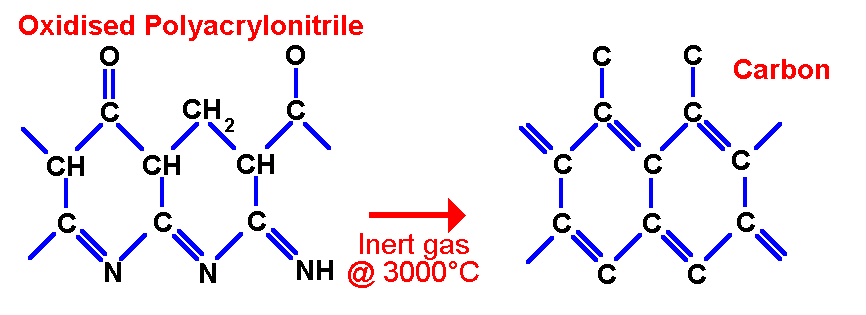 Polymerisation of acrylonitrile produces PAN, the most common carbon fiber