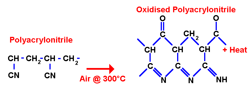 OXIDATION involves heating the fibers to around 300 deg C in air. This