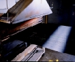 The white PAN strands at the bottom pass through the air heated oven and begin to darken