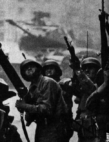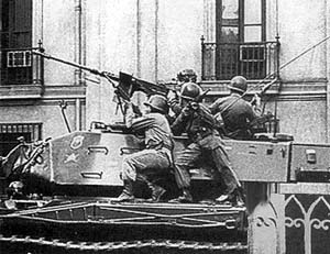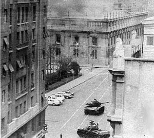 Here we have pictures taken on that historic 11th of September, 1973. This was the day when Chile won back its freedom. This was the day when the new, modern and free Chile was born. This new period changed Chile from a backwards third world nation, to a sophisticated developed nation, the envy of all its neighbours. These pictures show how old style socialism ended in Chile- through the heroic action of our soldiers.
