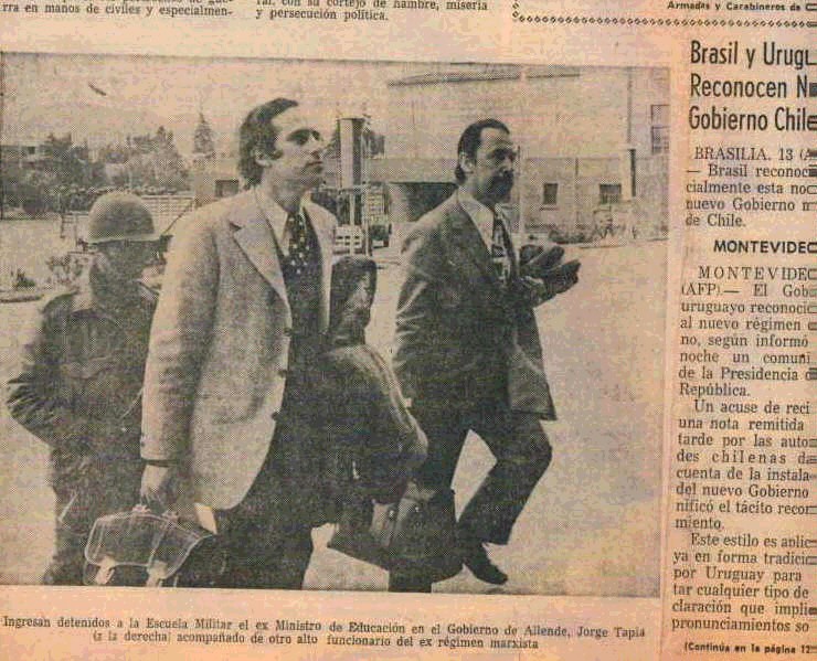 ex-minister Sergio Bitar and another member of the Marxist government being detained in 1974-pictures by the newspaper "El Mercurio".