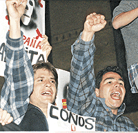 Patriotas Chilenos haciendo patria enfrente de la Cámara de los Lores, a favor del Senador Pinochet.