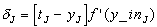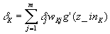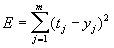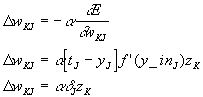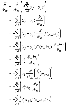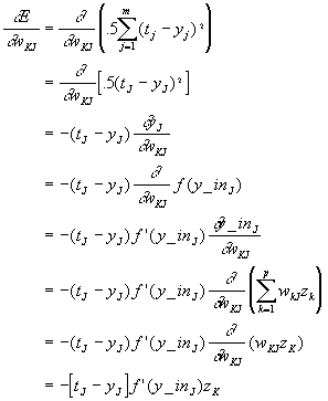 This function should look very familiar. It is almost exactly the same as the error function used for the delta rule. In fact, the only difference is that the difference between the desired output, tj, and actual output, yj, is used instead of the difference between the desired output and the net input to the output node, y_inj. Recall that we stated the activation function for an output node must be the identity function or some other differentiable function. Because of this restriction, we are not forced to use the net input to the output node in our error function.
