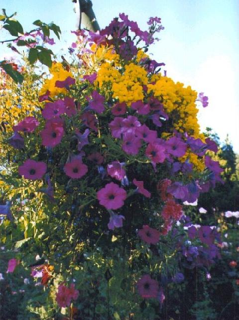 A hanging flower basket at the lovely Butchart Gardens, on Vancouver Island.