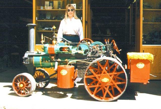 An operating scale-model, live-steam tractor at the Saanich Historical Artifacts Society.