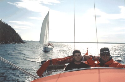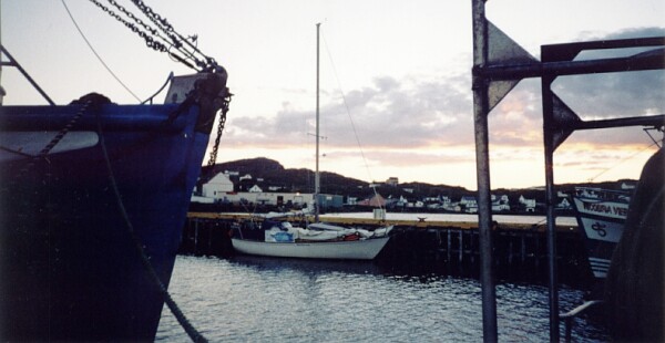 I had been in e-mail contact with his wife, Linda, off and on since March making arrangements to crew with them. They were going to be a part of the Newfoundland Flotilla 2000, and I had hoped to join the boat once they landed at Corner Brook. We hadn't made any firm plans by the time they departed, and I was at Exploits Islands when they called for me to meet them there. I thought my opportunity to be a part of the Flotilla had been missed.