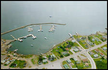We got up about 0700 the next day, and after a quick breakfast, set out to make up for lost time. The forecast, however, was calling for winds in the 40+ knots range to head our way, so we were watching the weather carefully, and always mindful of the closest safe port. The first one was Moreton's Harbour, and we wanted to visit with June and Carl Knight who run the marina there, but since the sailing was still good when we got to it, we carried on. By the time we got to Twillingate though, the picture was changing. It had become colder and rain was starting to fall. We decided it was time to look for a safe place to tie up and wait out the gale. We could hear Paws II calling on the VHF, but they couldn't copy us. I used the cell phone to let them know we were ok and what our plans were.