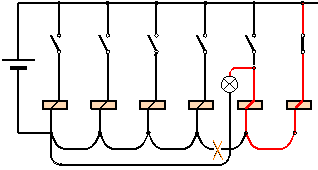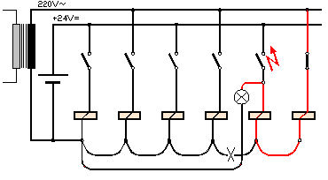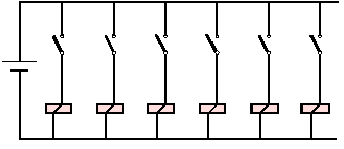Relaiskontakten. Zur leichteren Darstellung wurde als Spannungsquelle eine