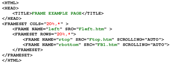 The source code and frame structure for frameset document for this example are shown below.