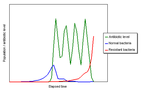 response to poor antibiotic regimen. This can be seen in the following graph drawn from output file data:
