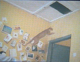 you can see the size of the leap that he has to take from my book shelves to make it up