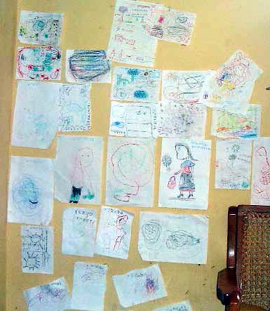 | Grasshopper season again - Yum! | Some pictures drawn by local children | 'Club Johnny' |