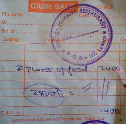 food.' A plate of food and a 500ml Coke comes to 1,900 Ugandan Shillings which