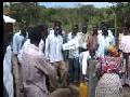 (813Kb) The first clip shows Dieter presenting the well to the people. As he finishes a sentence the chairman of the village translates it into Luganda for the people |