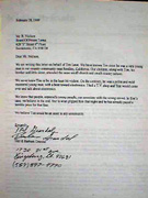 Dear Mr. Nielson, We are writing this letter on behalf of Tim Leon. We have known Tim since he was a very young man in our country community near Reedley, California. Our children, along with Tim, his brother and littler sister, attended the same small church and small country school. We never knew Tim to be in the least bit violent. On the contrary, he was a polite and mild mannered young man, with a bent toward electronics. I had a T.V. shop and Tim would come over and talk about electronics. We know that people, especially young people, can associate with the wrong crowd. In Tim's case, we believe in the end, fear is what gripped him that night and he has already paid a terrible price for that fear. We believe Tim could be an asset to any community. Sincerely, Mel & Barbara Grandal |