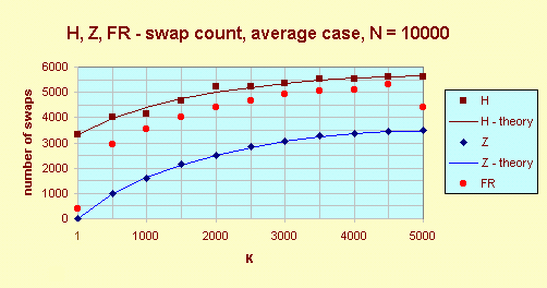 As a measuring instrument I used my PC with 6x86MX-PR233 processor and 32MB RAM. The graph Average time required H, Z, FR shows, that Z is faster than FR only for K = 1. I repeated a few times the measuring and always the finding of the median was faster than the finding of the K-th element, for K = 3000 or 4000. ![]() The graph H, Z, FR - comparison count, average case explains previous results. It proves that the Knuth's estimate of the average case for the number of comparison for H holds, too. The Z algorithm is best only for K = 1 otherwise FR is the winner. The theoretical result for FR for the finding of the median holds, i. e. 1.5N comparisons. ![]() The graph H, Z, FR - swap count, average case shows that Z has the least count of swaps. It shows that my estimate for S(N, K) for Z holds as well as. ![]() ConclusionAlgorithms Z and FR are always better than H; FR has fewer the number of