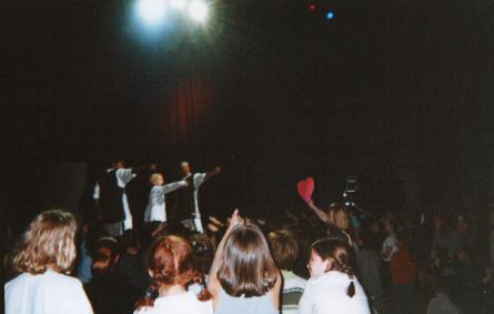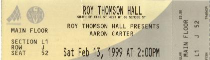 Me and my younger sister Shannon were very excited when it came to Feburary 13. For it was the Aaron Carter concert. It was a birthday gift for my sister from me. When we got to Roy Thomson Hall we saw Aaron Get out of the a van and go into the building. Shannon and I went crazy. Everywhere girls were screaming for Aaron. It was time to in we were 9 rolls back. First a radio D.J. came out and introduced V.I.P. a group opening up for Aaron. Our mom was waiting out in the lounge. She said when V.I.P. was playing she saw Aaron Playing in the snow. We couldn't believe it . He didn't stay out there long. When it was time for Aarom to come on all the girls went crazy. The lights started flashing Aaron's 2 dancers came out in raincoats. Looks like they were looking for Aaron. Then the lights went out and a spot light came on and there was Aaron. Now the screams of fans were so loud my ears started to ring. Aaron did a couple of songs. His dancers came out. Close to the end of the show Aaron's older sister Leslie came out. she was really good. Aaron came out one last time he sang one of his new songs. then he brought out Leslie and their mom Jane Carter out. He said "Thanks so much for comming, I love you all very much". We love him. It was a great concert. We can't wait until Aaron comes back. |