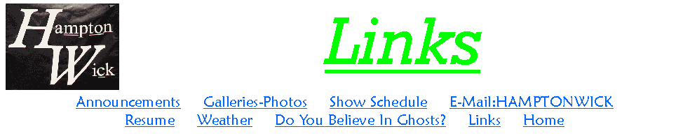 If you would like a link to your page here, e-mail us with your web-address and category of interest and we'll do the rest! (Please remember to title your e-mail "WICK-LINKS") Be it music, art, sports or anything entertaining, we would like to know about it!