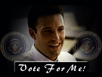 Come on!! The thought of Ben being President, sitting there in the Whitehouse running the country, doesn't exactly sound too bad now does it?!! He is a very well spoken, articulate and opinionated young man!! He would do a very decent job!!!! (and we are sure the Whitehouse would recieve more applications for Internships then EVER before!!) Face it he has got EVERYTHING it takes to make a GREAT leader!! Looks, Charm, Popularity... yeah sure he needs experience but hey... don't we all!!??? So if you agree with us, that Ben should run for President, please vote in our poll below and then sign our 'petition' and tell us exactly why YOU think that Ben Affleck would make the PERFECT candidate for the prestigious position of PRESIDENT of the UNITED STATES!!!