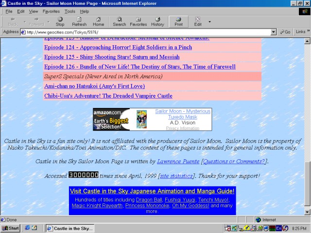 March 2002: Google rates 'Castle in the Sky' #3 out of 528,000 matches for the keyword "Sailor Moon".