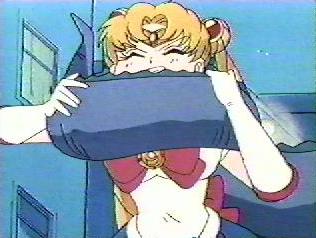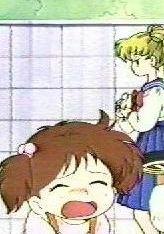| Luna said that Serena couldn't help herself because of the Chanella, so she took it from Serena and threw it away behind a fence. Serena came out of her trance. | Serena ran home and tried to take the Chanella away from Sammy but he fought with her. Serena got mad and slapped him. Sammy ran away and Serena felt bad. Luna told her to transform and go to the store. | Luna and Sailor Moon went to the pet store. It was full of children and the saleswoman was telling them to take the Chanella everywhere. Sailor Moon said that she would punish the lady for using cute pets for evil purposes. |