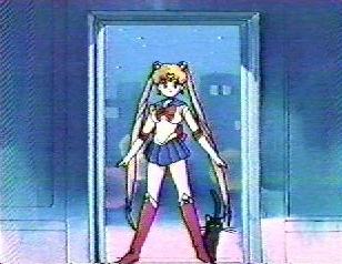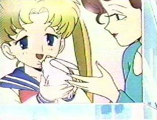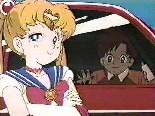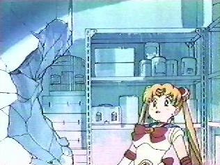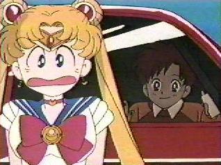 | The yoma chased Sailor Moon out of the store and caught her in its tail. Sailor Moon was in deep trouble but Luna called to her that the yoma's tail was it's weak point. Sailor Moon used the Moon Tiara Action on the base of the yoma's tail and destroyed it. She felt very relieved. | Sailor Moon saw Sammy running towards her so she hid behind a car in the parking lot. Sammy called her Sailor V and said that he was a big fan and wanted her autograph. Serena said that she was Sailor Moon not Sailor V, but Sammy said that since she was cute too it didn't matter, and he would like her autograph. |