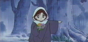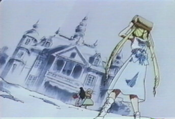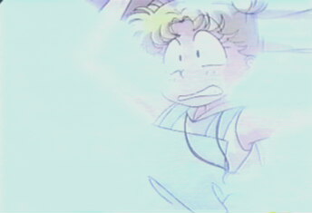 wrong?" yelled Amy. "Who's there?" shouted Raye. "I'm sorry!" said the little girl. Rain began to pour down. "Oh no!" "This way," indicated the girl. "I'm scared!" wailed Serena as the four girls ran through the dark and stormy night! |