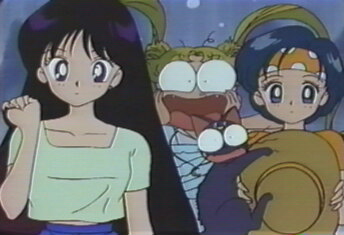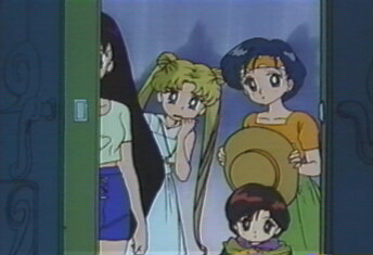 girl walked in. The "monsters" turned to the three older girls. "Do you have a reservation with us?" they enquired politely. "Yes, I'm Raye Hino, from Tokyo," replied Raye. "Oh yes, we're expecting you, please come in..." |