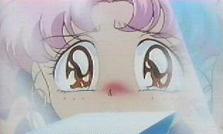 | She lifts the Crystal and uses its power, but nothing happens! Rini cries out "Not even Sailor Moon can help Mama!" She runs out as Sailor Moon collapses and the others catch her. The Scouts start to go after Rini, but Tuxedo Mask stops them, saying that she needs to be alone, and she'll be safe inside the Palace's shield. | ||