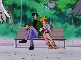 something. "Now that I'm in high school," she was murmuring, "I think our relationship should be more... I mean... you know... I wouldn't mind if you..." Serena paused. Darien didn't seem to be paying attention. |