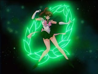 "Mercury Crystal Power, Make-Up!" "Mars Crystal Power, Make-Up!" "Jupiter Crystal Power, Make-Up!" "Venus Crystal Power, Make-Up!" "In the Name of the Moon, we'll punish you!" |