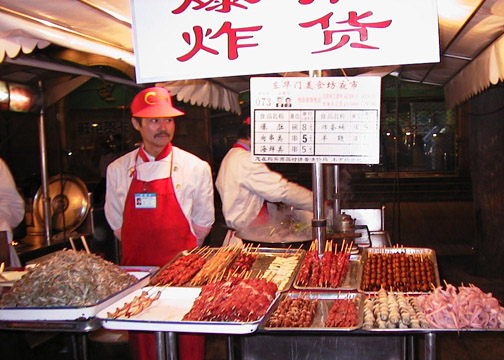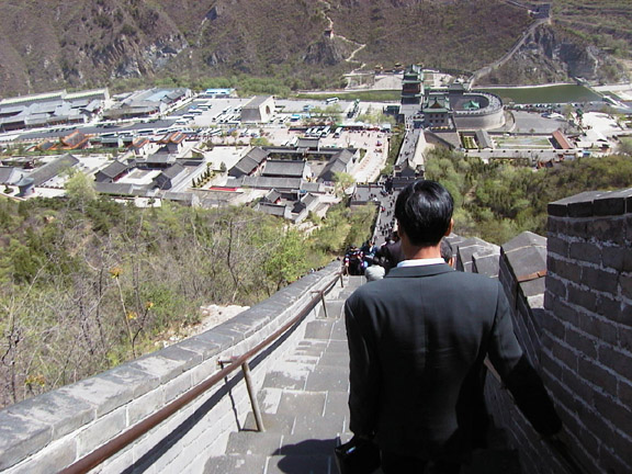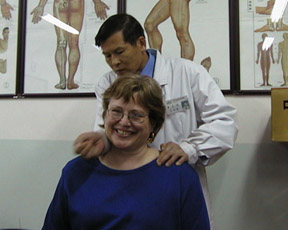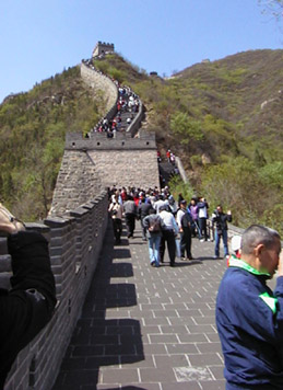 Day 4: 6:30am Breakfast. Jade Factory. I climbed the Great Wall to the 3rd Tower. The steps are tall and uneven. Lunch. Visited the Ming Tombs where I got my fortune told by an old man with a dark green roundtable inset with tiles in a "Wheel of Fortune" manner. Suspended over the table was a dragon head that i spun. Visited Chinese Herbal Medicine Hospital where a Qi Gong Master had us link hands and run electricity through our fingers and doctors diagnosed our problems. Dinner. Wang Fujing Night Market.