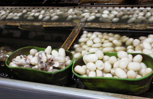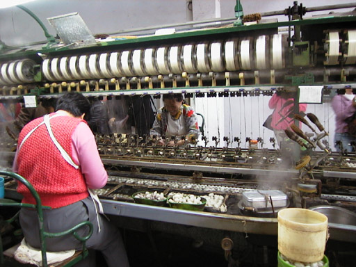 Day 8: Breakfast. Visit Pearl store. Bused to Suzhou to visit Hanshan Temple and silk factory where they boil the bugs. Lunch. Visit Garden of the Master of the Nets, Twin Tower Pagodas, Mountain Villa Garden and Embroidery Factory. We rode on a boat ride through the canals of Suzhou, that look very similar to the ones in Venice. It was stinky and people washed and dumped their sewage into the same water. Dinner. Bused to Shanghai. Checked into Hua Ting Hotel where we met 2 of Anthony's aunt's friends.