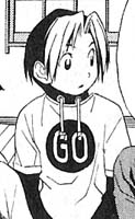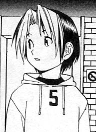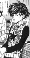 volume 6, page 148 Isumi thus far managed to wear only rather boring dress shirts and need his hair trimmed. But this cardigan makes it obvious that his grandmother dresses him. I could see a girl wearing something like this to flaunt her chest. Isumi is a guy though, and this is the wrong way to flaunt chest, if that is his goal.
