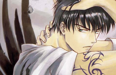 First thing first: Lawful Drug (Gohou Drug). It's Gay. It's very very Gay. It's also pretty damn good compared to some of Clamp's less Gay works. The picture over there is Rikuou from Lawful Drug. It's off the photo album furoku that came with Asuka 6 (the other side is Kazahaya). Simply because there is virtually NO information on the series I'm going to provide a brief summary. Kazahaya Kudou is a broke, homeless young man who is found dying in the snow by Rikuou Himura. Rikuou's boss, Kakei, offers Kazahaya a job in his drugstore and a place to live (with Rikuou). Kazahaya can barely stand Rikuou. To make extra money, Kazahaya and Rikuou sometimes take special jobs from Kakei that involve finding special items. This is because everyone in the story is psychic apparently. Kazahaya has the ability to pick up memories, feelings and emotions just by touching things. Of course there's more to the story than just these little jobs. Kazahaya and Rikuou both have mysterious pasts with mysterious women in them, and Kakei is up to something. And the story is very Gay. Kakei has a boyfriend named Saiga, and there is nothing straight about them. Saiga regularly molests Kazahaya. Rikuou and Kazahaya are damn near stereotypical seme and uke, except they don't have sex. This series oozes gay. Nyahnyah.net has some (admittedly) mediocre translations of the first volume of the manga. They're not great but enough to give a good idea of what's going on.