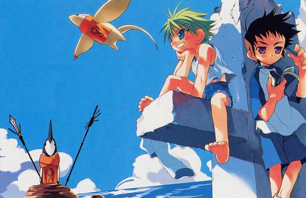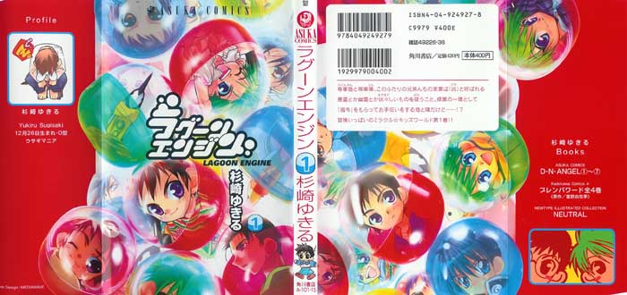 And finally...the image. It's from a postcard set that came with Asuka some time ago. The series is Lagoon Engine by Yukiru Sugisaki (better known for D.N.Angel and Megami Kohousei). It's about two brothers Ragun En and Jin (yes, the title is a terrible bilingual pun) who are kinda like uh...onmyouji. Recently it seems Kadokawa Shoten has tried to start a new magazine with fantasy type series in it, and Lagoon Engine has vanished from Asuka and according to the ads is in this new magazine.