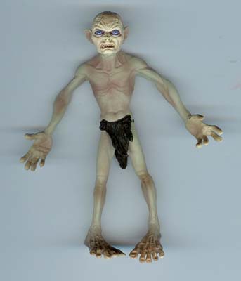 Same day, still with Gina, we went to Kaybee, aka the reject toystore, and pillaged stuff. Among the action figures I found a gollum and uh...there was a Legolas too, but I already have one, and there was other stuff. Anyways, gollum struck me as special because not only is it gollum, but he comes with a base that speaks and says "my precious" so I had to buy it. When we got home and I took it out of the box we found out it's even MORE special because the gollum bends like gumby, so you can pose him almost however you want.