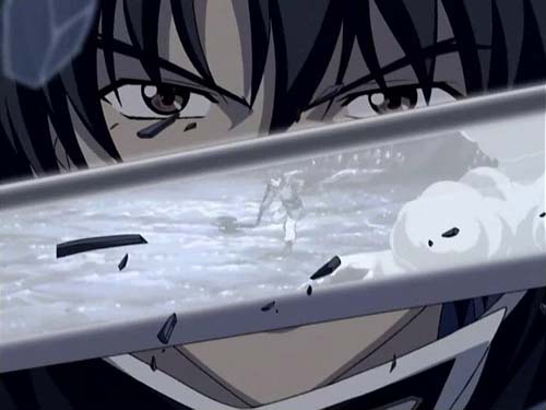 Other than that I've been watching anime. As evidenced by the picture up there I am having an illicit affair with Scrapped Princess and think Shannon-nii is CHO KAKKOI. Chris is too. Puu screencapped that and graciously let me use it here, I just shrunk it a bit so it's not so big. Puu has pretty much got all our relevant thoughts on Saint Beast here. If you don't want to read that, I can sum it up in 2 words: it sucks. Hank is going to kill me because I watched the 1st ep of LoGH and couldn't keep the characters straight, so I started renaming them after Harry Potter characters. My thoughts on that are limited to the fact that it's WWII in space. Narue no Sekai only has ONE space ninja in it, a huge disappointment, mostly it's mediocre shounen romance. And finally, Gad Guard is stylistically appealing, we like the characters, but we're not sure what the plot is.