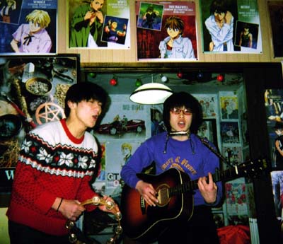 Crazy Boy and Minoru came to my apt.(filled with anime posters!) for a White Day Concert. (Crazy Boy is in purple) ^_^