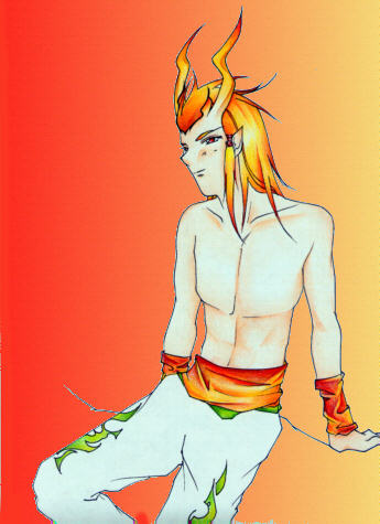 Colored Pencil, CG for background; Ifrit; Original FF art. Inspired by a fan-fic written by Storm Lord (though these don't look a thing like the summons he describes in the fic ~_~) |