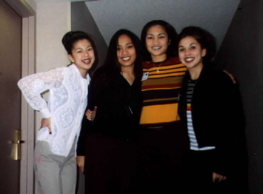 Liz, Louise, Marichel, and Cristelle at a DECA competion before the dance.